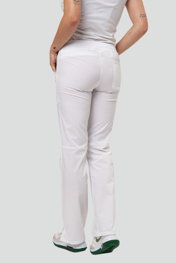 Najveći benefit dolazi iz pletenog struka (Knit Waistband) ojačanog unutrašnjom elastičnom trakom. Ovaj pojas pruža stabilnost pri kretanju, eliminiše osjećaj pritiska u struku i daje udobnost nalik sportskoj odjeći — uz zadržan profesionalni izgled.