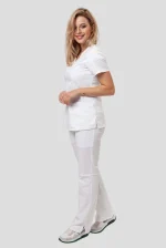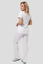 Najveći benefit dolazi iz pletenog struka (Knit Waistband) ojačanog unutrašnjom elastičnom trakom. Ovaj pojas pruža stabilnost pri kretanju, eliminiše osjećaj pritiska u struku i daje udobnost nalik sportskoj odjeći — uz zadržan profesionalni izgled.