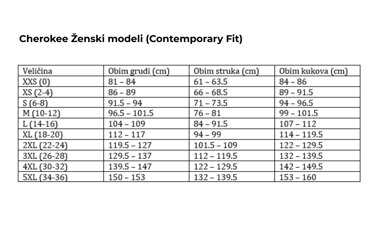 Napomena: Preporučujemo da naručite pantalone za jedan broj manje od veličine koju inače nosite.
