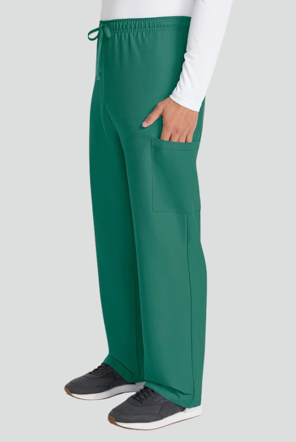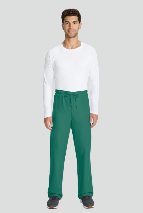 Muške medicinske pantalone dizajnirane su da pruže maksimalnu udobnost, funkcionalnost i dugotrajnost tokom intenzivnih radnih dana. Klasičan kroj ravnih nogavica (Straight Leg) i Unisex Mid Rise struk omogućavaju prirodno pristajanje i slobodu pokreta, bez obzira na građu.
